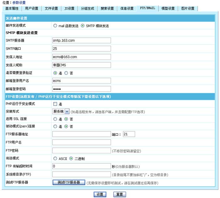 系统根目录(FTP):FTP服务器存放文件的目录地址,目录结尾不要加斜杠“/”,空为根目录。如:/phome 。
