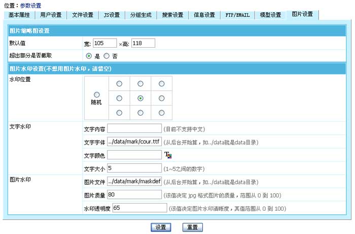 图片水印:图片水印相关设置(图片文件设置空为使用文字水印)。