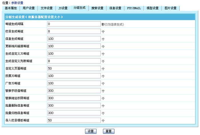 系统依据服务器配置进行刷新生成的设置,如服务器配置较低,可适当改小默认分组设置。每组生成数量越大对服务器配置要求就越高。