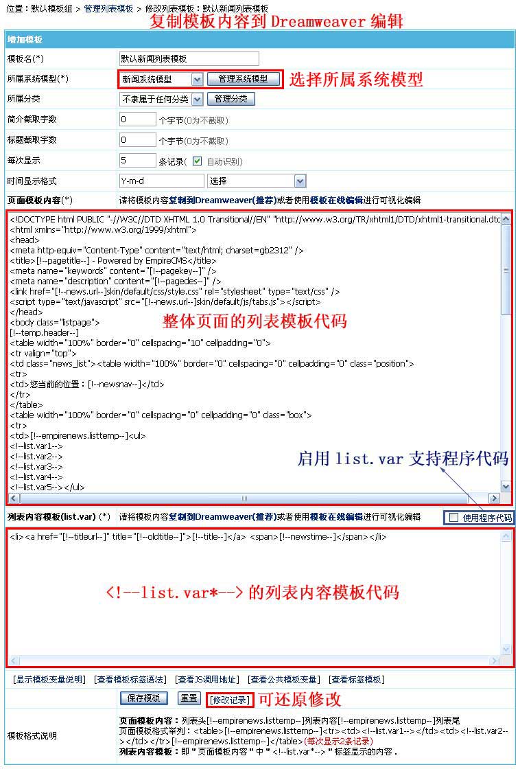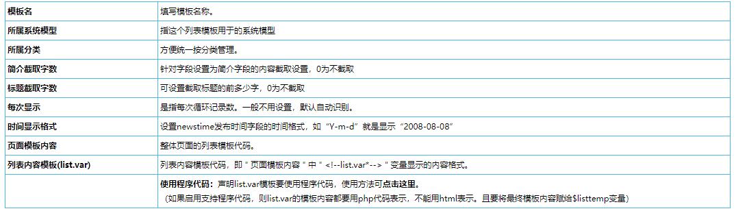 列表模板是指信息列表页面使用的模板。(制作方法基本同标签模板)