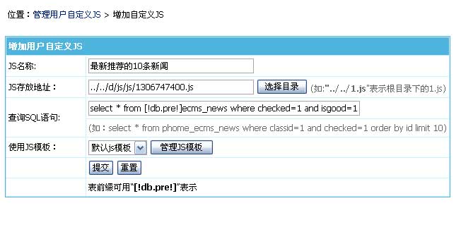 填写JS文件存放地址(地址从后台目录开始算,"../../"表示在根目录)。